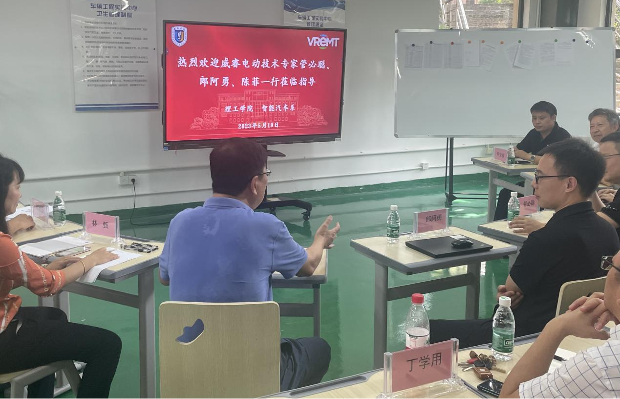 交流会上工学部主任杨涛教授、理工公司经理助理林甄博士与威睿专家就新能源汽车动力电池技术未来发展方向和电池技术课程公司理工公司教学开展的情况展开了交流,对电池及电池管理系统的现状及未来发展方向深入交换了意见。