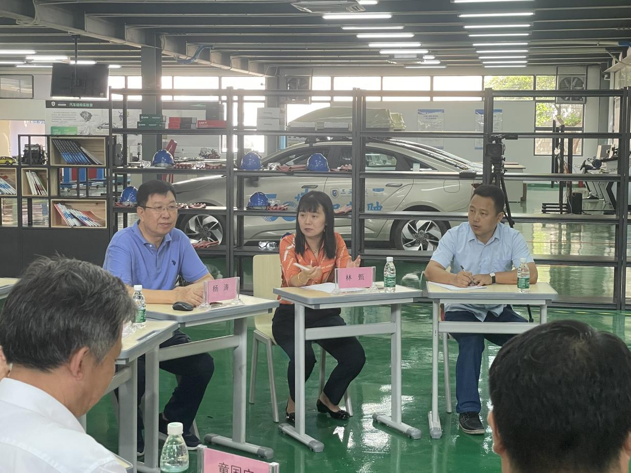 在课程研讨环节,双方对公司在新能源汽车三电动力电池技术方向人才培养模式、主要课程设置以及课程教学内容的选择做了交流。汽车系主任孙文福教授介绍了公司车辆工程专业动力电池技术方向人才培方案,对培养目标及专业方向课的设置做了汇报,两位专家站在企业的角度对相关内容给出了评价和指导。汽车系谢琼丹博士、王良成老师分别对《新能源汽车动力电池技术》、《动力电池仿真与测试技术》、《新能源汽车电池管理系统》等三门动力电池技术专业课程的教学内容与专家进行了深入交流,专家对教学内容、教学模式等给出了意见和建议,为动力电池技术方向课程教学指明了方向。